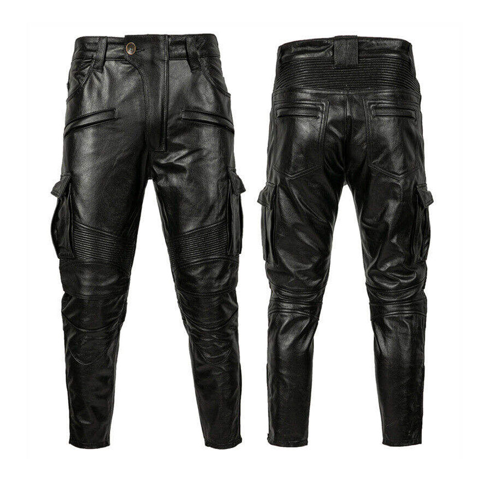 Trouser Main Features Additional Inforamtion Colors Style : Men Biker Trouser Leather Treatment : Nappa Green, white and black Waist : Stretchable waist Leather Type : Cowhide Blue, white and black Protection : Removable padding on knee Shipping : Free Yellow, white and black Pockets : Side pockets Leather : 100% Pure Orange, white and black Internally : Fully lined Grey, white and black Lining : Non-insulated nylon lining Non-insulated nylon lining -